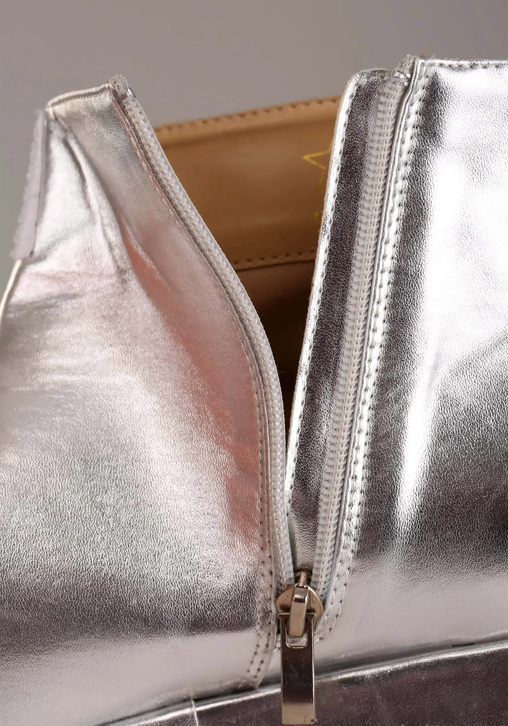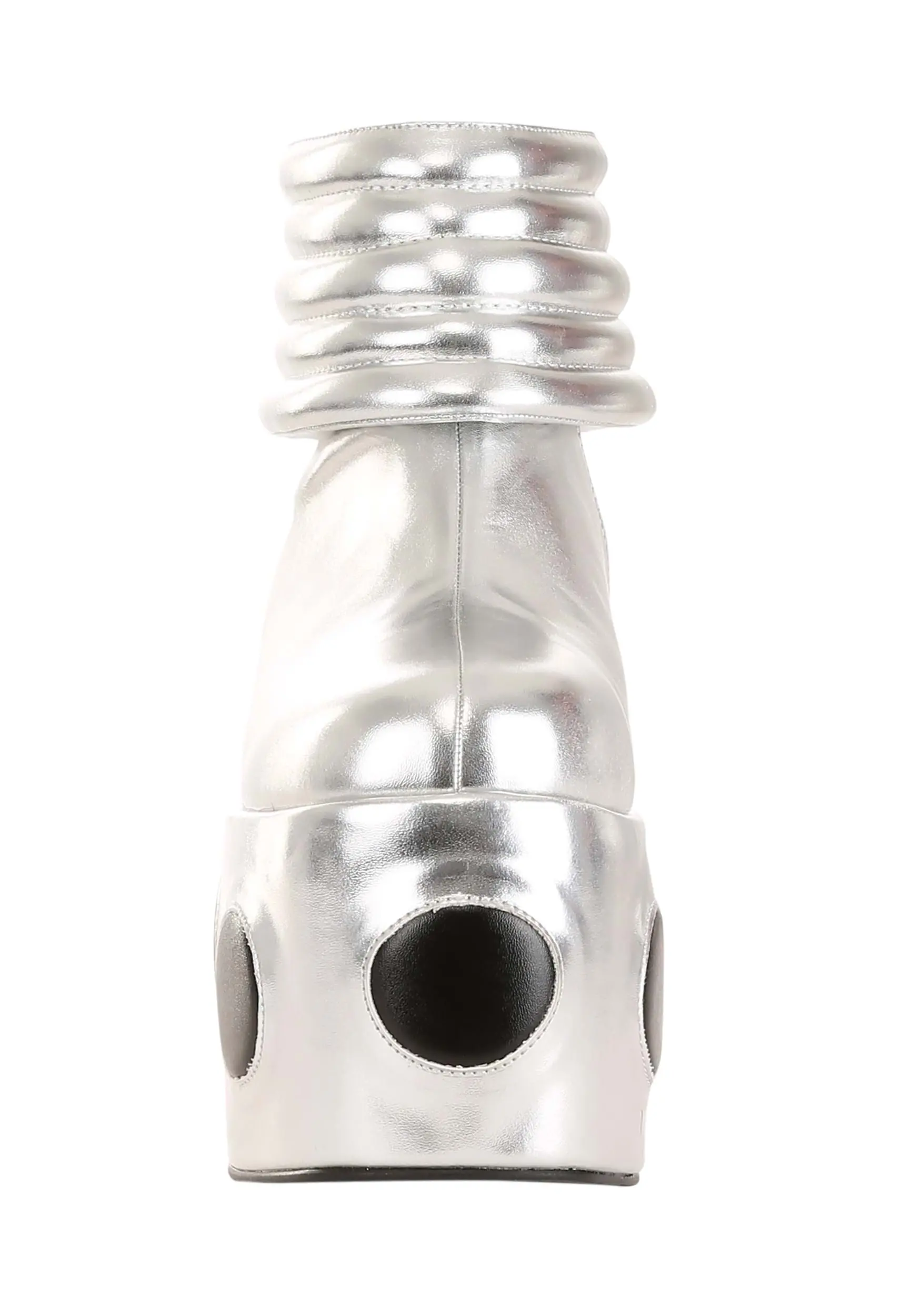 Whether you want to add some flair to your next show or you want to become the legendary guitarist from KISS, this pair of KISS Spaceman Boots will have you ready to rock. The boots have zippers for fitting and are completely covered in a shimmering metallic silver sheen. The high platform bottoms give you extra height and the top features a cuff that makes them look like boots that came straight from the moon! They also pair perfectly with our officially licensed KISS costumes, so you can get the full Spaceman experience!