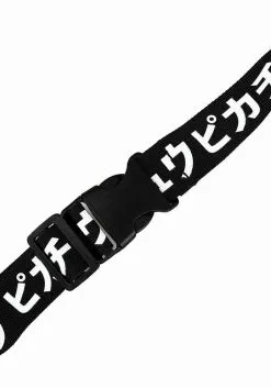 The fanny pack matches the bright yellow of the Pokémon’s staticy hair. Pikachu’s cute face is embroidered on the front of the pack. The electric pocket monster is winking and sticking its tongue out. The pack has two large yellow ears attached to the top as well. Inside, you will see that there is plenty of room for your keys, wallet, and extra Poké balls. The black strap is adjustable and has a clip which makes it easy to take the pack on and off. Lastly, the black strap has Japanese writing in white all around it.