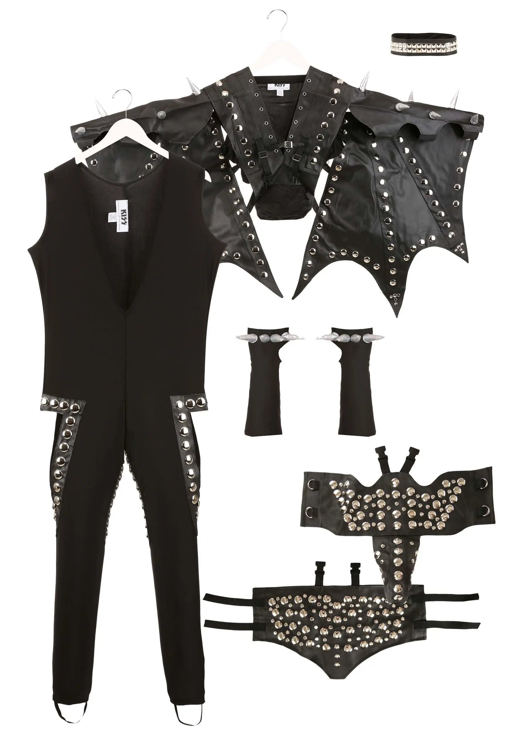 This costume comes with everything you need to rock all night long. It starts with the faux leather body suit that has inseams and hip cutouts that are edged with strips of studded faux leather. The matching faux leather vest has stretch knit seams with underarm cutouts. Don’t forget about the signature codpiece that fastens with Hook and Loop fastener and nylon straps. The matching wings give this costume the stunning feature it needs to stand out in any crowd. Top it all off with the stretch knit gloves and faux leather choker! Next time you’re heading out to Detroit Rock City be don’t forget your Authentic Gene Simmons Demon Costume. Also, don’t forget to practice—that could be a little embarrassing, and even the best of the rockstars still rehearse beforehand. The only requirement for this crazy costume is you never stop rocking!
