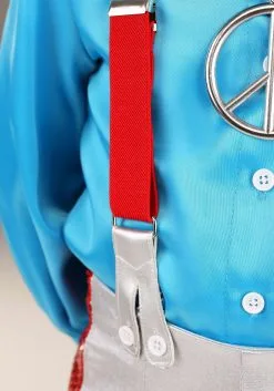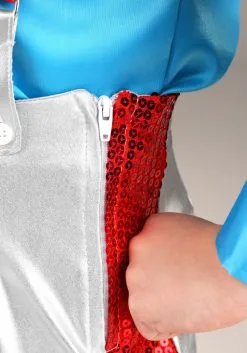 Bound to transport your child right back into the 1970s, this historical kid’s costume is as cute as it is fun to wear. It’s a shiny blue shirt cut in the era-appropriate style, with a wide collar and cuffs. The shiny white pants are flared and feature red sequin stripes up the sides, and the suspenders help tie the whole look together. Add a fab wig, some big jewelry, and heeled dancin’ shoes, because this look is ready to boogie with your kid’s unstoppable energy. You’re welcome!