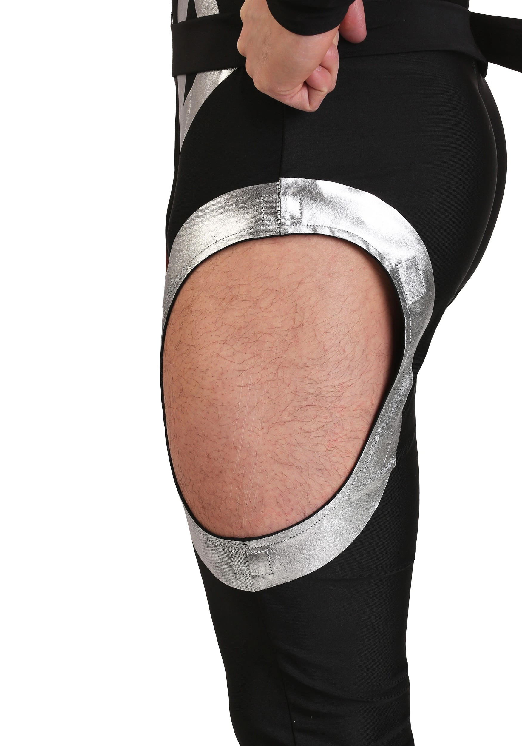 The Catman KISS Costume is inspired by Eric Singer’s stage outfit and it’s 100% ready to rock. It starts with a pitch-black jumpsuit that stretches to fit. The front and sides feature silver, metallic accents to help you look like a true rock and roll legend. The black belt fits around the waist and has a silver, metallic cat emblem in the front. The black gauntlets fit around your wrists, for maximum rocking, and the finishing touch to this outfit comes in the form of a simple pair of boot covers. They fit over any pair of shoes, so you can wear your favorite pair of kicks with this outfit, while still maintaining fully KISS style.