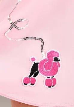 This hip and adorable Women’s Roller Skate Rita costume will have you on cloud nine! Look fresh as a daisy in your off-the-shoulder black shirt that will have all the boys crashing into the rink walls because they forget to look where they’re going. The sassy little pink skirt flounces beautifully as you skate and features a sweet pink poodle with a silver sequin leash. Add the black belt with the flirty bow and tie the pink scarf in a jaunty knot around your neck.