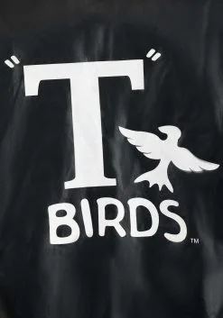Be systomatic, hydromatic, and even ultromatic when you’re wearing your exclusive, officially licensed Adult Grease Men’s Jacket! The black polyester jacket is coated in a shiny finish to give it the appearance of leather. An offset front zipper complements the silver-tone decorative studs and the silver plastic slide buckle on the belt. The T-Birds logo is printed on the back in white.